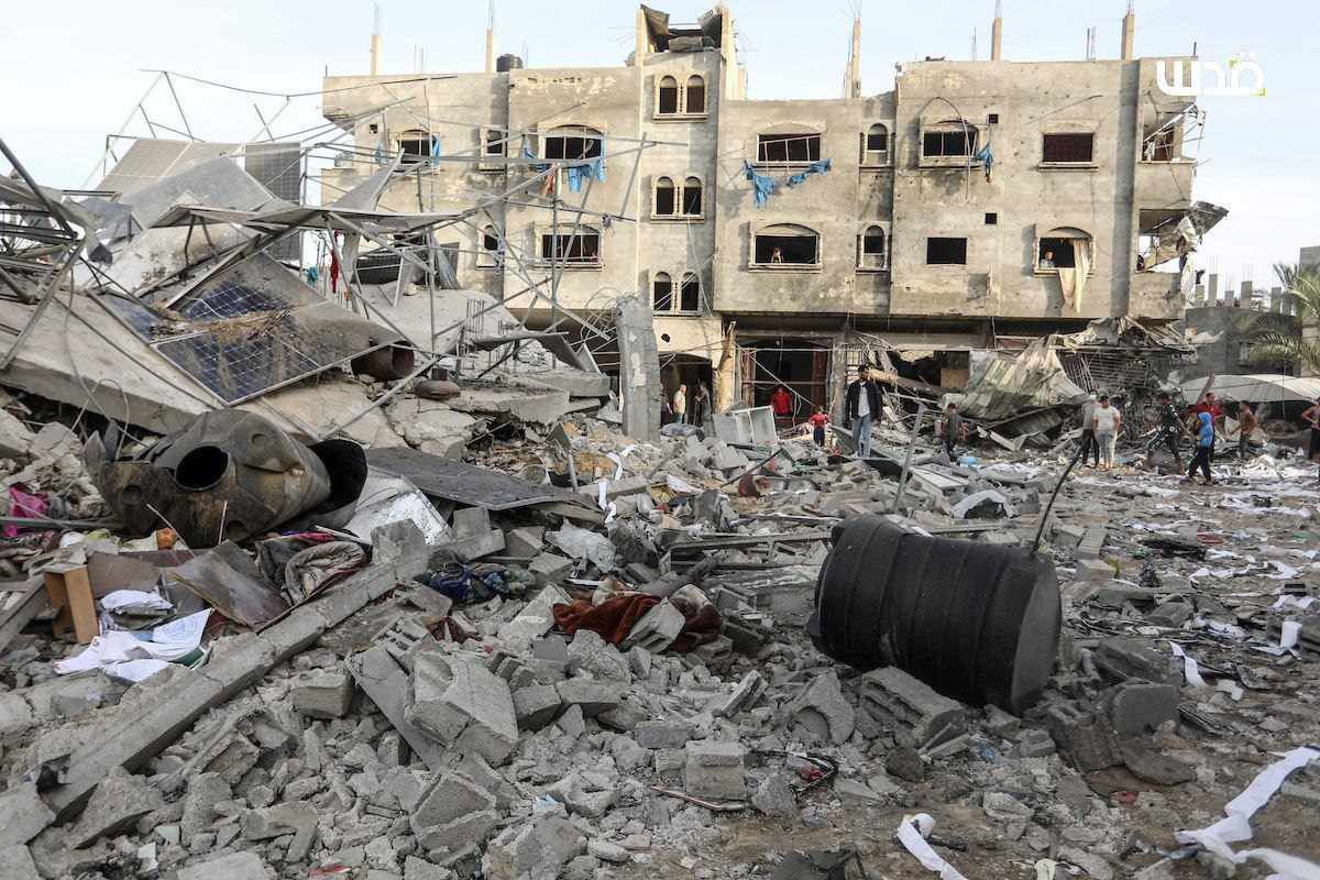 Una massiccia distruzione è stata lasciata sul terreno dagli attacchi aerei israeliani, a Rafah, nel sud della Striscia di Gaza.