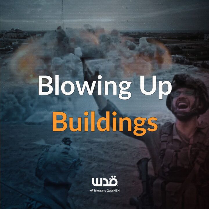 Le forze di occupazione hanno fatto saltare in aria edifici residenziali intorno alla strada 8 nel quartiere di Al-Zeitoun, a sud della città di Gaza.