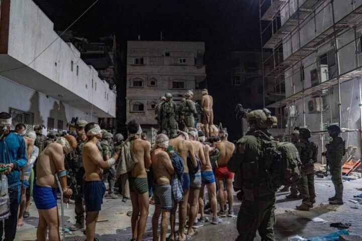L’esercito di occupazione israeliano ha diffuso una foto che documenta il rapimento del personale medico e dei feriti presso l’ospedale Kamal Adwan, nel nord di Gaza, costretti a spogliarsi durante l’attacco militare nell’ospedale, avvenuto alcune settimane fa.