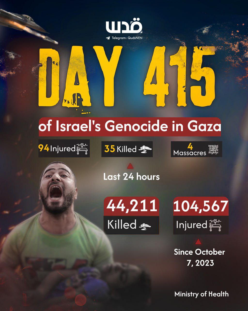 “Il bilancio documentato delle vittime palestinesi ha ora raggiunto 44.211 morti e 104.567 feriti dal 7 ottobre 2023.