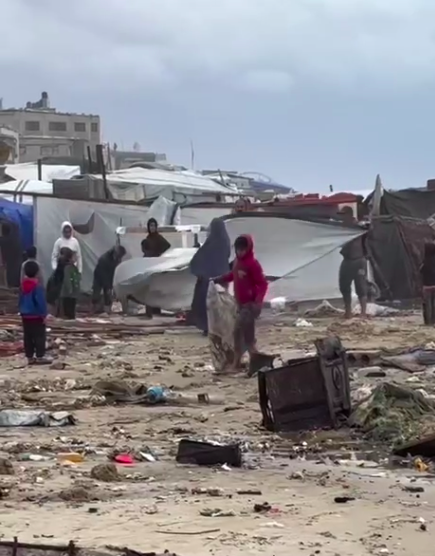 Le famiglie sfollate a Deir al-Balah, nella zona centrale della Striscia di Gaza, stanno affrontando condizioni estreme: i forti venti e le basse temperature spazzano via le loro tende, lasciandole vulnerabili alle dure condizioni.