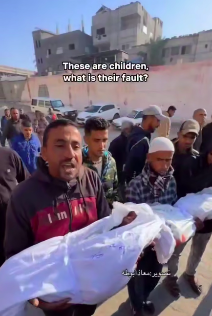 Due bambini della famiglia al-Qadi sono stati uccisi, e la madre, il fratellino e altri sono rimasti feriti, quando gli aerei da guerra israeliani hanno preso di mira una tenda che ospitava gli sfollati a sud-ovest della regione di al-Mawasi, l’area designata come zona sicura dall’esercito israeliano a sud-ovest di Khan Younis, nel sud della Striscia di Gaza.
