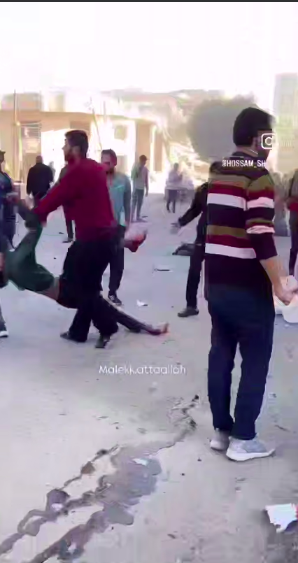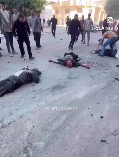 Scene del massacro compiuto dalle forze di occupazione israeliane: un attacco aereo israeliano ha preso di mira un gruppo di civili in via Omar Al-Mukhtar a Gaza.