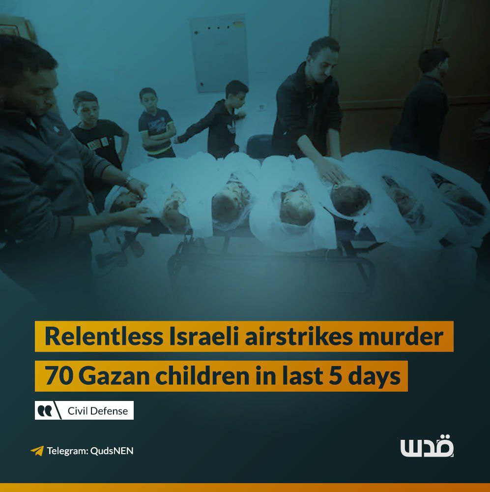 L’Autorità della Difesa Civile nella Striscia di Gaza ha annunciato domenica che circa 70 bambini sono stati uccisi negli ultimi cinque giorni a causa dei bombardamenti israeliani in diverse aree della Striscia.