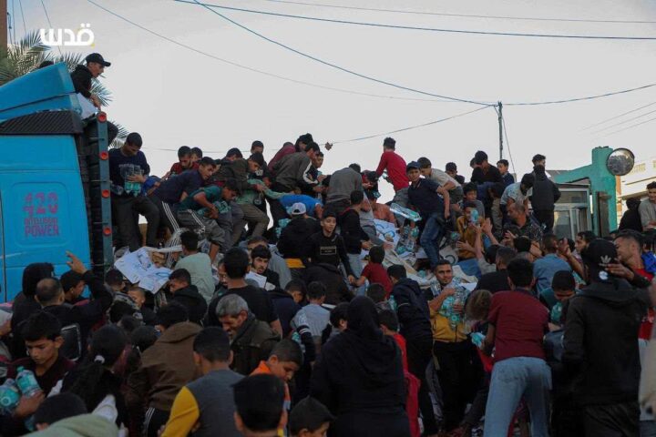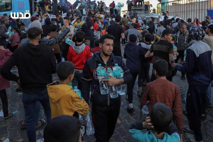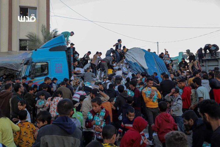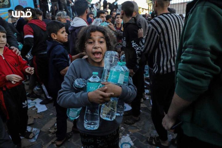 Israele sta conducendo una guerra per affamare la Striscia di Gaza. Ecco le immagini, questa mattina, a Khan Yunis, nel sud, quando un carico di acqua potabile di cui c’era urgente bisogno è arrivato nella città dove decine di migliaia di sfollati aspettavano.