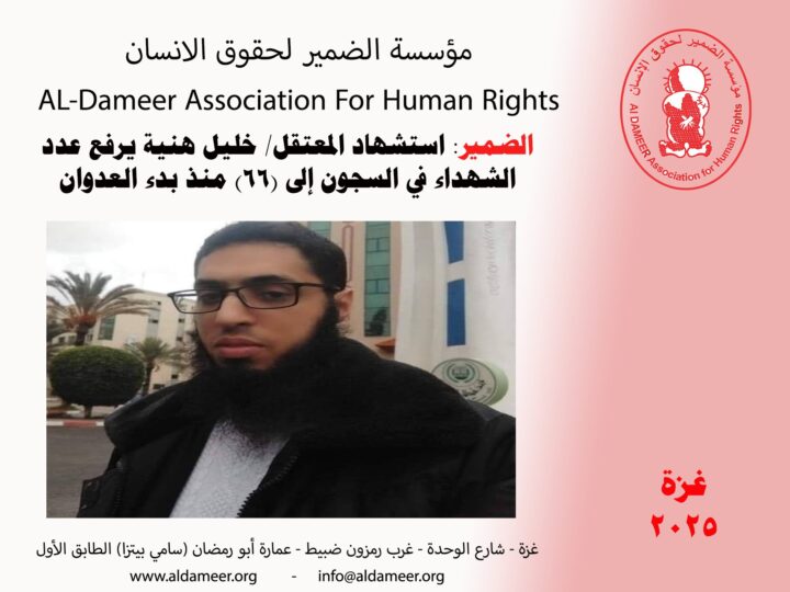 Gaza – PIC. L’Associazione Al-Dameer per i Diritti Umani a Gaza ha dichiarato di aver ricevuto giovedì scorso la notizia della morte del detenuto di Gaza Khalil Ahmed Haneyya, 35 anni, nel carcere di Negev.