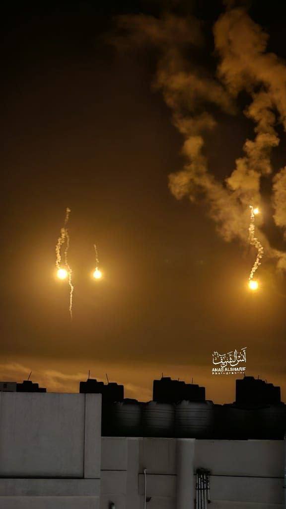 L’esercito israeliano lancia razzi nei cieli settentrionali della Striscia di Gaza.