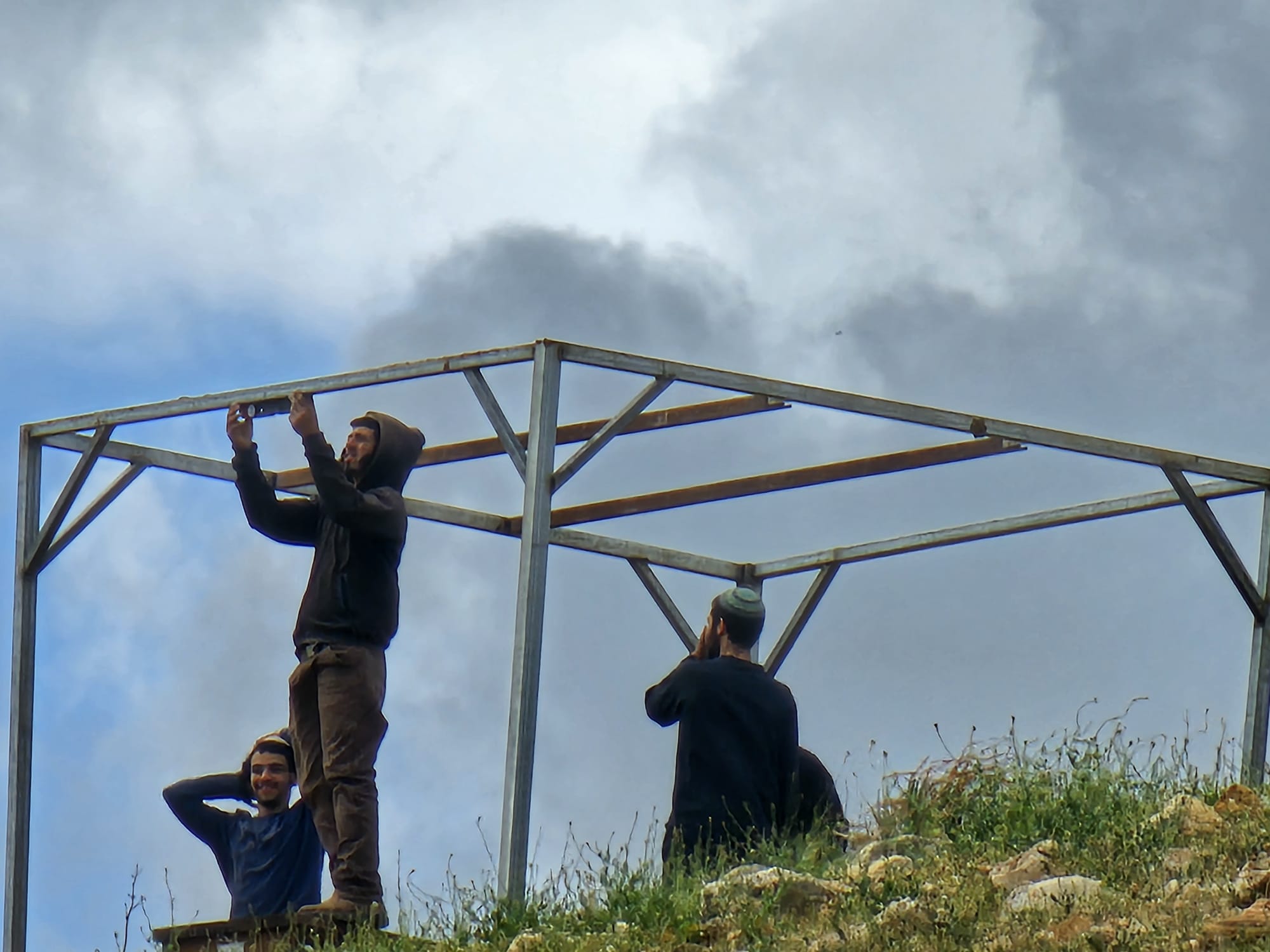 Coloni israeliani installano una tenda vicino alle terre palestinesi nella Valle del Giordano settentrionale