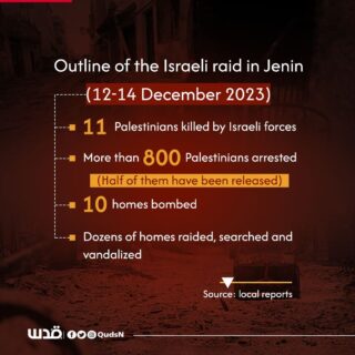 Jenin-InfoPal. Israele continua il genocidio dei Palestinesi sia nella Striscia di Gaza sia in Cisgiordania. Questa mattina, domenica 7 gennaio,