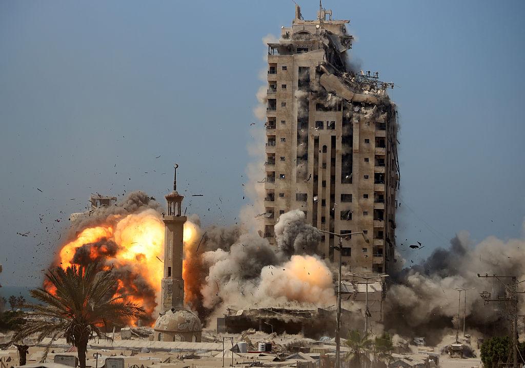 Nelle ultime ore, l’esercito israeliano ha intensificato gli attacchi contro gli edifici più alti, come la Torre Taiba colpita da due missili su via Al-Rashid, nei pressi del porto di Gaza.