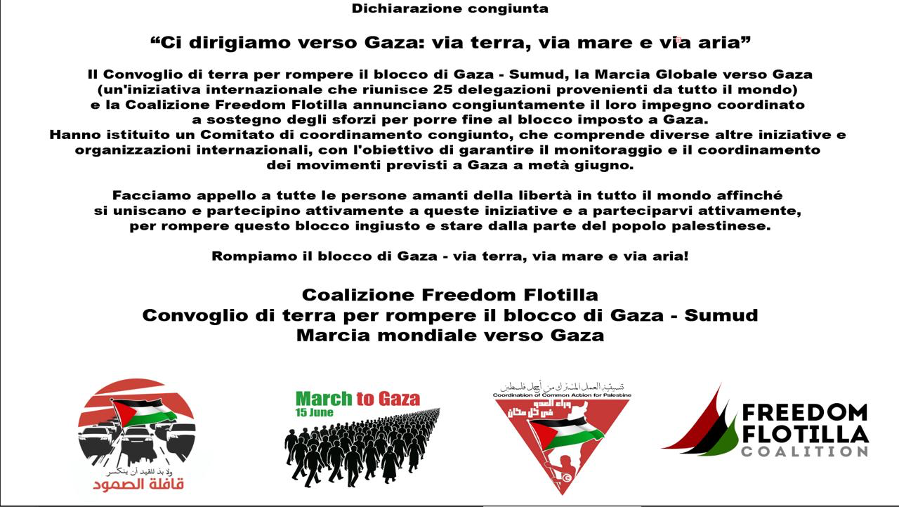 Dichiarazione congiunta: “Verso Gaza: via terra, mare e aria”