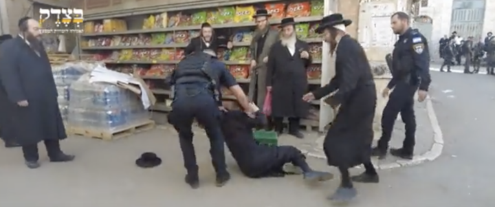 Gerusalemme/al-Quds. I nazisionisti non risparmiano neanche gli ebrei. Mercoledì la polizia israeliana ha fatto irruzione nel quartiere ebraico antisionista della Gerusalemme occupata per abbattere le bandiere palestinesi e ha brutalmente attaccato gli ebrei antisionisti, buttandoli a terra sulla strada, colpendoli e dando loro pugni in faccia.