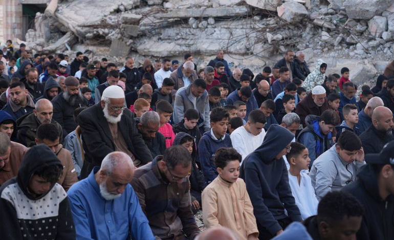 Proprio come hanno fatto durante la guerra, hanno pregato tra le macerie causate dagli attacchi di Israele alla Striscia.