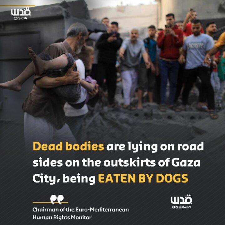 decine di cadaveri giacciono ai lati delle strade a est e a ovest della città di Gaza e vengono MANGIATI DAI CANI;