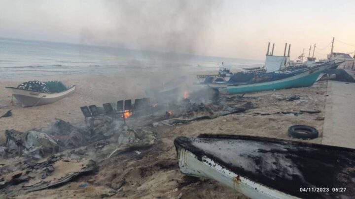Più di 10 barche di pescatori palestinesi sono state bruciate in seguito al bombardamento, da parte delle navi da guerre israeliane, della costa di Rafah, nel sud della Striscia di Gaza.
