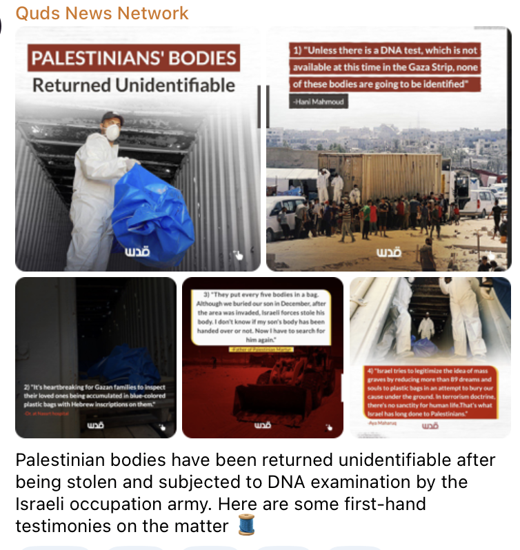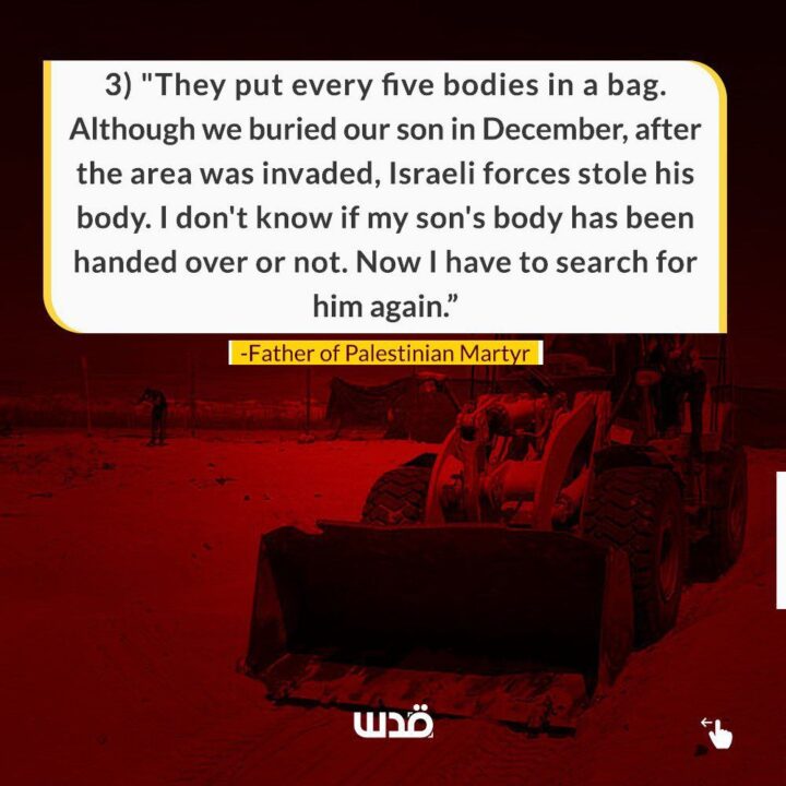 Corpi palestinesi sono stati restituiti non identificabili dopo essere stati rubati e sottoposti a esame del DNA dall’esercito di occupazione israeliano. Ecco alcune testimonianze di prima mano sulla questione.