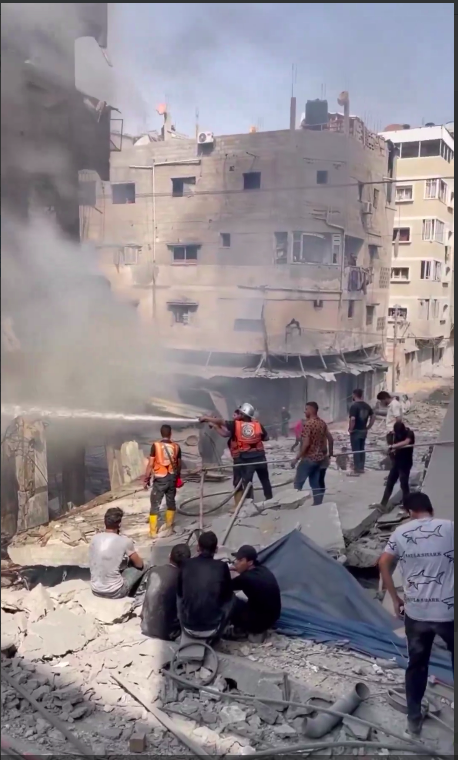 Mentre i palestinesi lavoravano per scavare e recuperare le vittime dalla scena, un altro attacco aereo israeliano ha colpito un appartamento vicino, massacrando 7 palestinesi, i cui resti sono stati sparsi nella zona.
