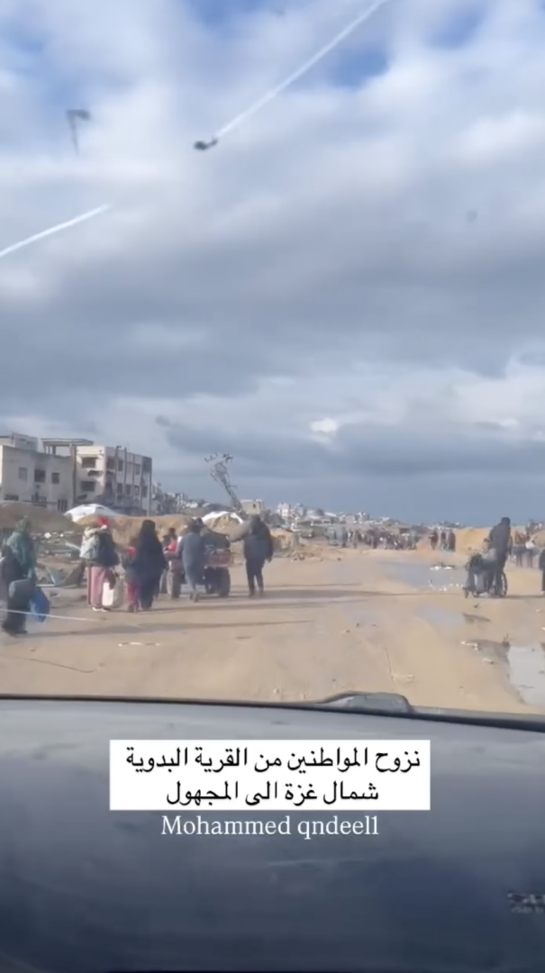 Le famiglie palestinesi sono state costrette ad abbandonare le loro case a causa dei continui attacchi israeliani contro il villaggio beduino nella Striscia di Gaza settentrionale.