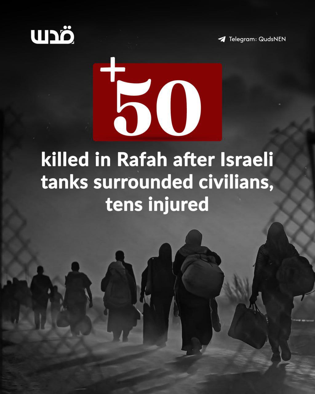 Le IOF hanno bombardato il quartiere Sultan a Rafah e hanno emesso ordini di sfollamento per i residenti, mentre la Difesa civile ha annunciato la perdita di contatto con uno dei suoi equipaggi mentre cercava di salvare il personale dell’ambulanza della Mezzaluna Rossa, poiché diversi dei suoi veicoli erano stati assediati dalle IOF nella zona e alcuni dei suoi paramedici sono rimasti feriti.