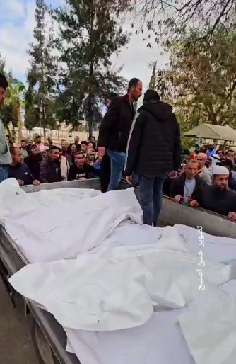 Palestinesi stanno preparando le 25 vittime del devastante attacco israeliano alla casa della famiglia Al-Aqqad a Khan Younis per le preghiere funebri e la sepoltura. Tra le vittime ci sono bambini e donne, tutti uccisi nel sonno.