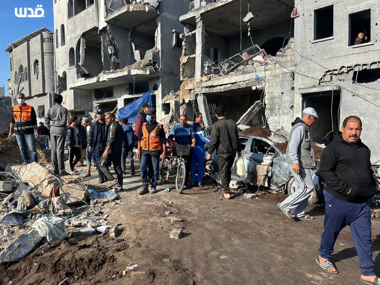 Fonti locali hanno riferito che gli aerei di occupazione hanno distrutto un quartiere residenziale con decine di case nel campo di al-Bureij, in un nuovo massacro che ha provocato numerosi morti e feriti, la maggior parte dei quali donne e bambini; molti altri sono ancora sotto le macerie.