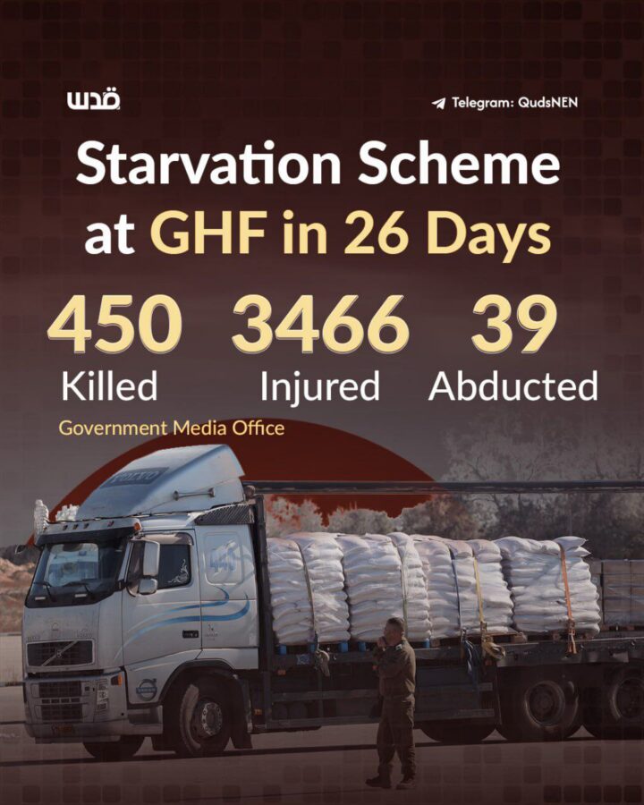 Fonti mediche dell’ospedale Al-Awda di Nuseirat, nella Striscia di Gaza centrale, hanno riferito di aver ricevuto due civili uccisi e 35 feriti a seguito dell’attacco delle forze israeliane a raduni di cittadini in attesa di aiuti in via Salah al-Din, a sud di Wadi Gaza.