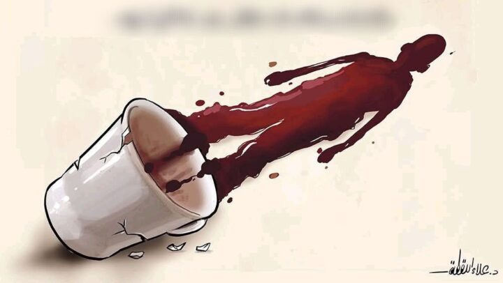 L’ultimo lavoro del fumettista Alaa Laqta sul mortale attacco israeliano a un bar sulla spiaggia di Gaza.