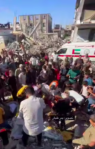 Almeno 11 palestinesi sono stati uccisi e più di 70 feriti, molti dei quali donne e bambini, in un attacco aereo israeliano che ha colpito un gruppo di civili alla rotonda di Gurab, nella nuova sezione del campo profughi di al-Nuseirat, situato nella Striscia di Gaza centrale.