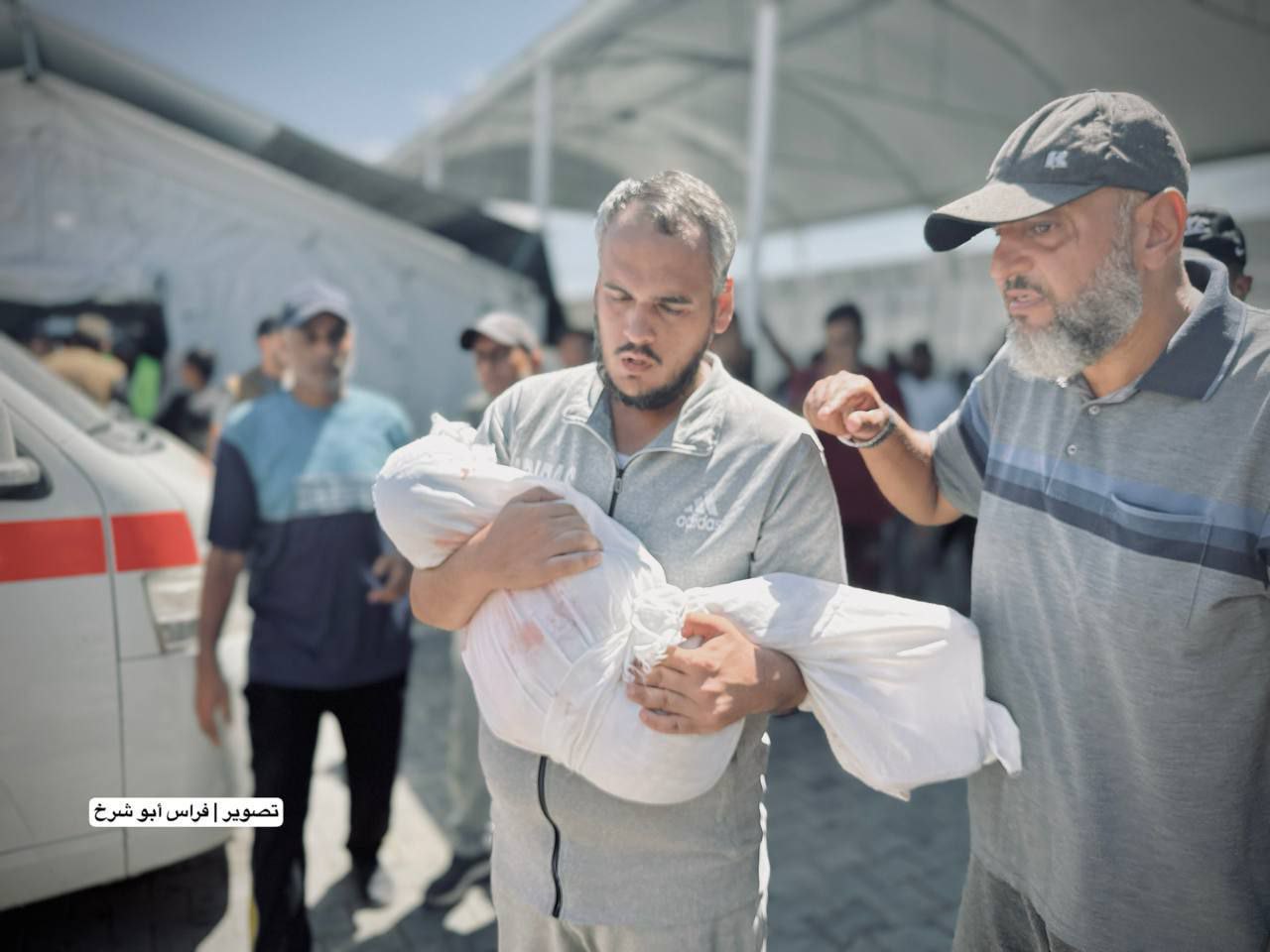 Due palestinesi sono rimasti uccisi e altri feriti in seguito a un attacco aereo israeliano che ha preso di mira una tenda di sfollati fuori dal complesso medico Nasser, a Khan Younis, nel sud della Striscia di Gaza.