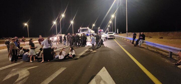 Coloni israeliani bloccano i camion di aiuti alimentari salvavita diretti a Gaza sulla Route 25 vicino a Dimona, mentre le forze di occupazione israeliane rimangono a guardare senza intervenire.