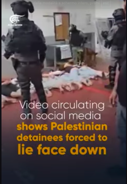 Al Mayadeen. Hamas afferma che le immagini diffuse dall’occupazione, che mostrano gli attacchi e i maltrattamenti dei prigionieri nella prigione di Ofer, rivelano “il vero volto criminale di questo occupante nazista”.