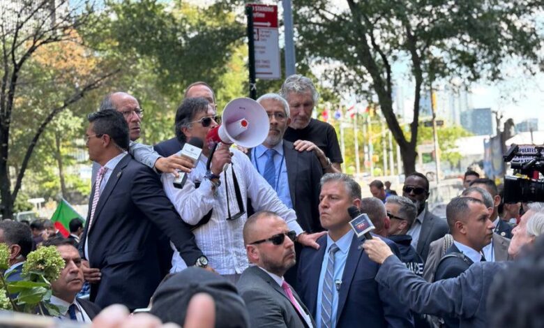 New York-Quds News. Venerdì, il presidente colombiano Gustavo Petro si è unito a una grande protesta pro-Palestina e contro il genocidio a Times Square, a New York. È comparso insieme all’accademico colombiano Víctor de Currea-Lugo e al co-fondatore dei Pink Floyd, Roger Waters.