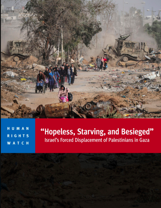 Al Mayadeen, Human Rights Watch. Da ottobre 2023, “Israele” è responsabile dello sfollamento forzato, intenzionale e su larga scala di civili palestinesi a Gaza, commettendo crimini di guerra e crimini contro l’umanità, secondo un report reso noto il 14 novembre da Human Rights Watch.