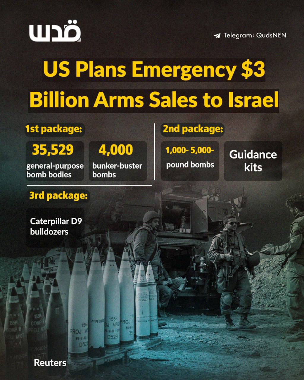 Nel frattempo, il Dipartimento di Stato USA ha autorizzato una potenziale vendita di armi a Israele, per un valore di quasi 3 miliardi di dollari, secondo fonti del Pentagono diffuse venerdì.