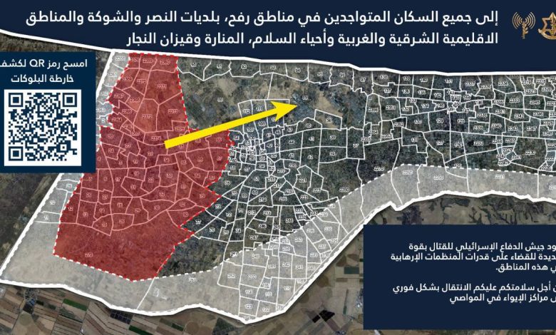 Lunedì, il portavoce dell’esercito israeliano Avichay Adraee ha minacciato i residenti di Rafah e dei quartieri orientali di Khan Younis di al-Manara e Qizan al-Najjar, ordinando loro di lasciare immediatamente le loro case. L’esercito ha in programma di attaccare queste aree a breve.