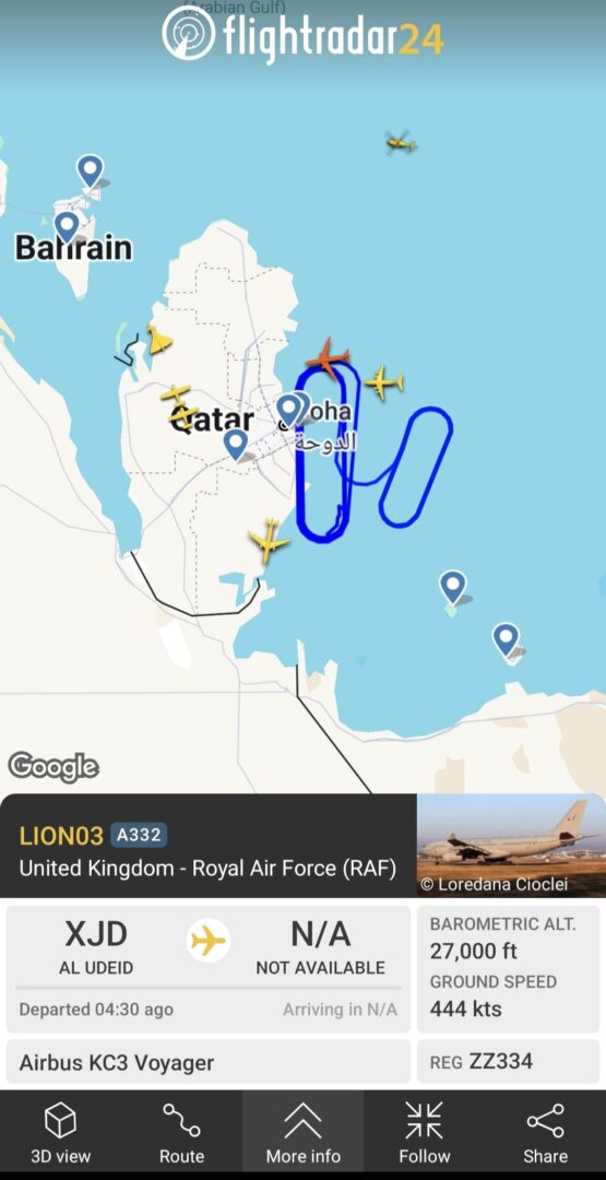 Un aereo da rifornimento Voyager della RAF britannica stava sorvolando il Qatar mentre i jet israeliani bombardavano Doha, prendendo di mira la delegazione negoziale di Hamas.