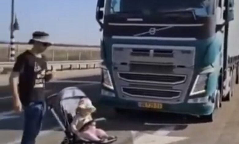 Palestina Occupata – Quds News. Venerdì, coloni israeliani si sono radunati sulla strada che porta al valico di Karm Abu Salem per bloccare l’ingresso degli aiuti umanitari tanto necessari nella Striscia di Gaza. Uno di loro ha posizionato un passeggino davanti a un camion degli aiuti.