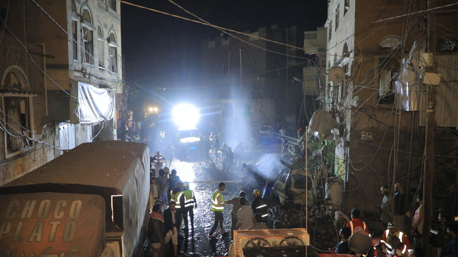 I filmati trasmessi dal canale satellitare al-Masirah hanno mostrato ingenti danni a veicoli ed edifici nell’area bombardata di Sana’a, con cittadini accorsi sul posto con in braccio quello che sembrava essere un bambino morto. Altri civili feriti piangevano sulle barelle, diretti verso gli ospedali.