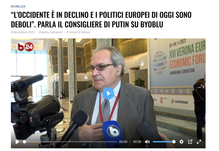 A parlare è il consigliere di Vladimir Putin, Valery Fadeev in un’intervista all’emittente televisiva italiana Byoblu a margine del Forum Economico Eurasiatico che si è tenuto a Samarcanda, Uzbekistan.