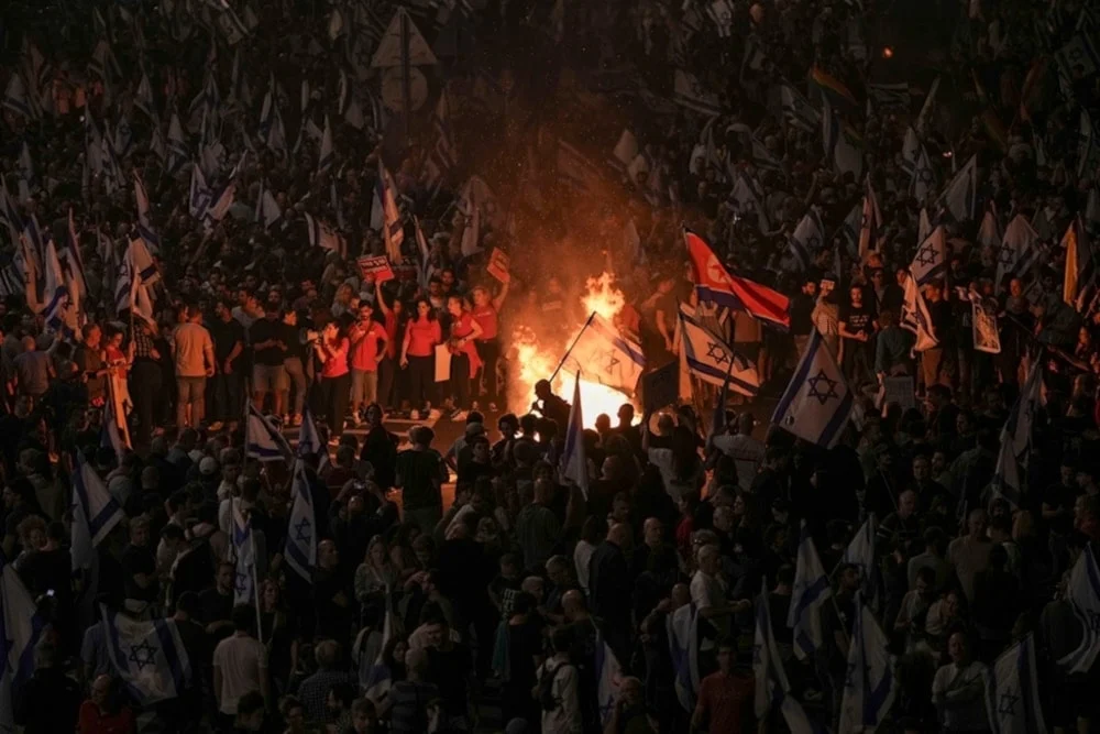 Ciò avviene mentre “Israele” si destreggia tra divisioni interne e minacce esterne: decine di coloni israeliani, tra cui attivisti e famiglie di prigionieri, hanno inscenato una protesta a Tel Aviv, mercoledì sera, bloccando una strada principale per condannare il fallimento del primo ministro Benjamin Netanyahu nell’ottenere un rapido accordo per il rilascio dei prigionieri a Gaza.