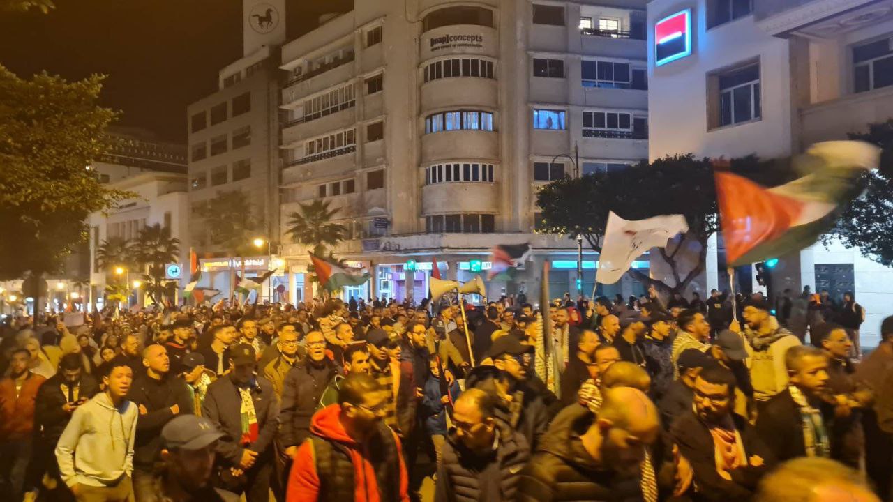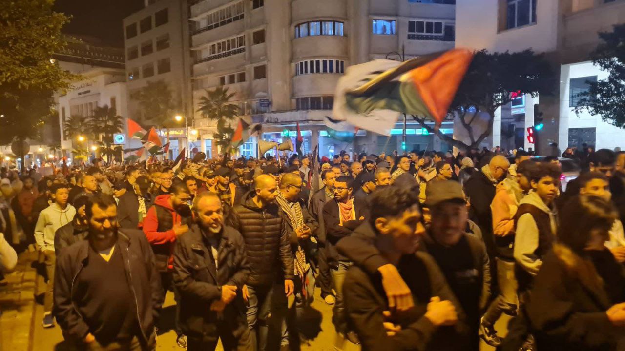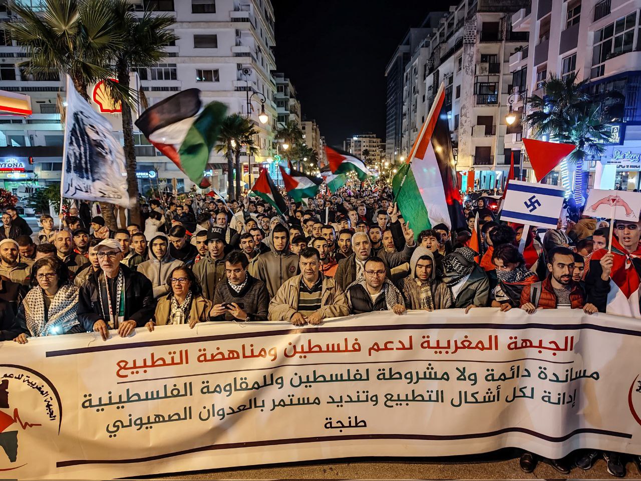 Manifestanti hanno marciato, domenica sera, a Tangeri, in Marocco, a sostegno del popolo palestinese e della sua legittima resistenza al colonialismo e al genocidio israeliano.