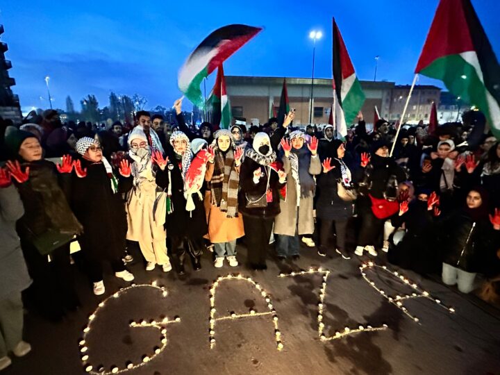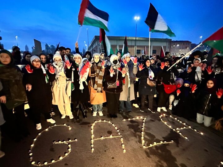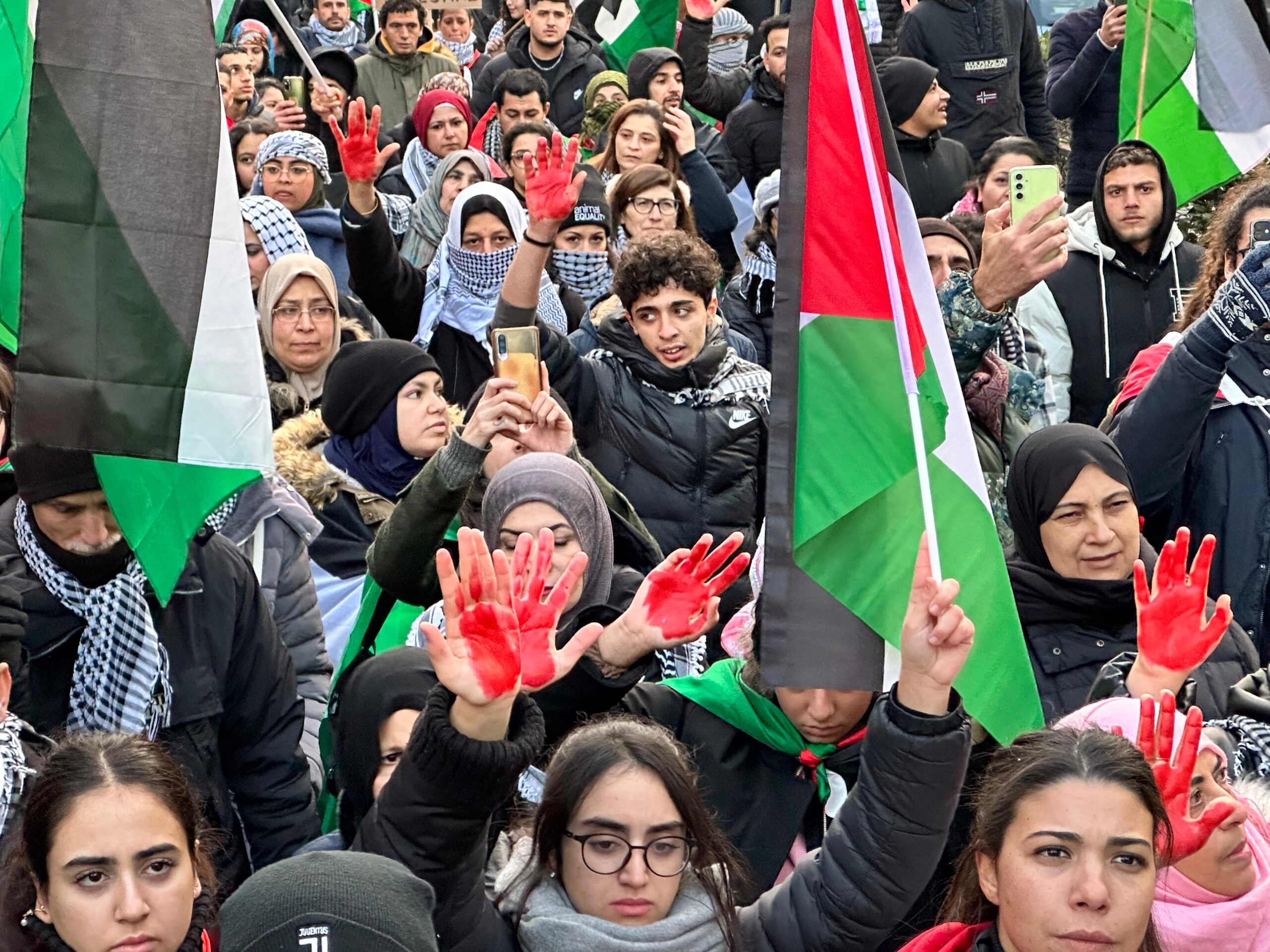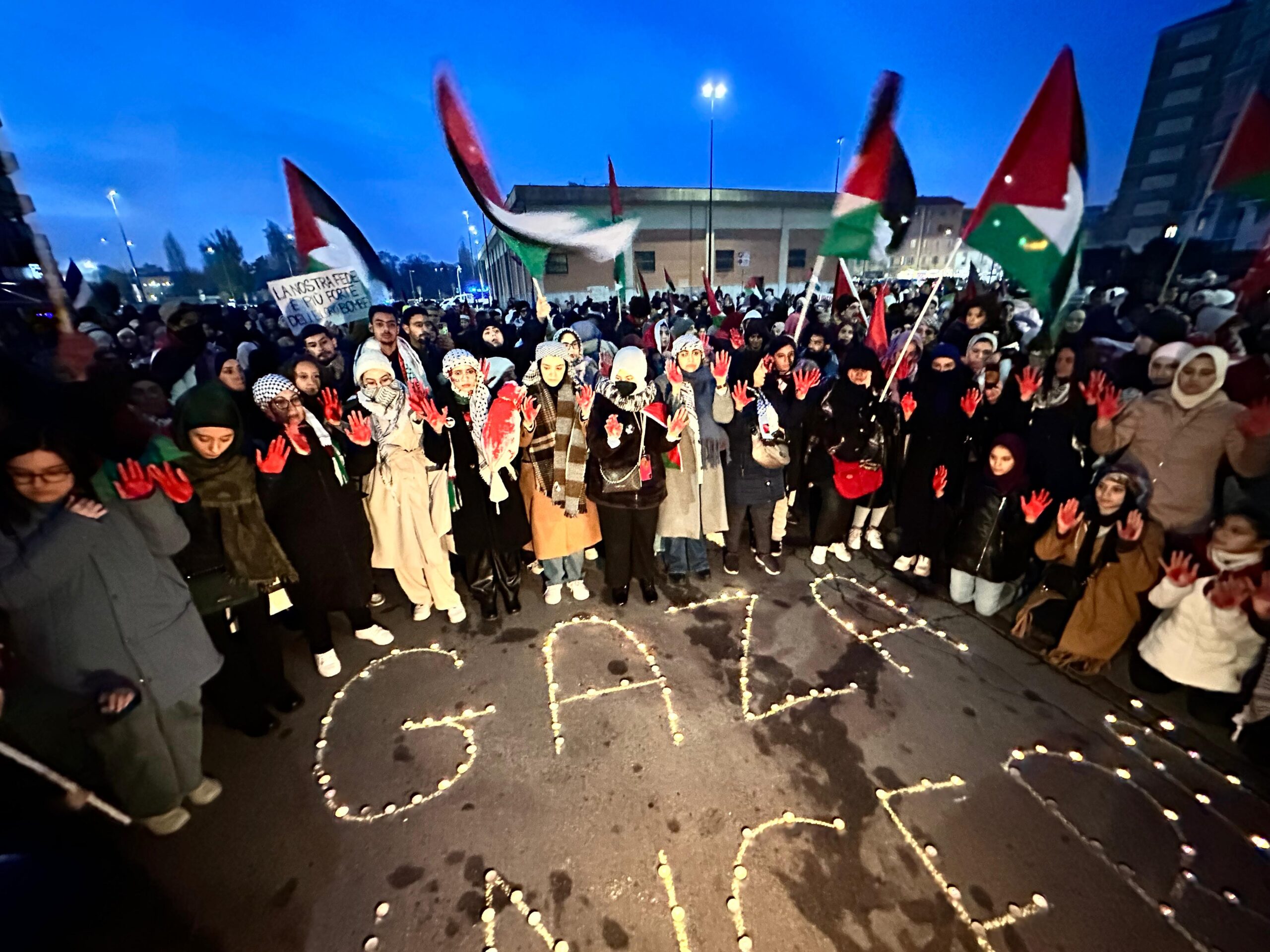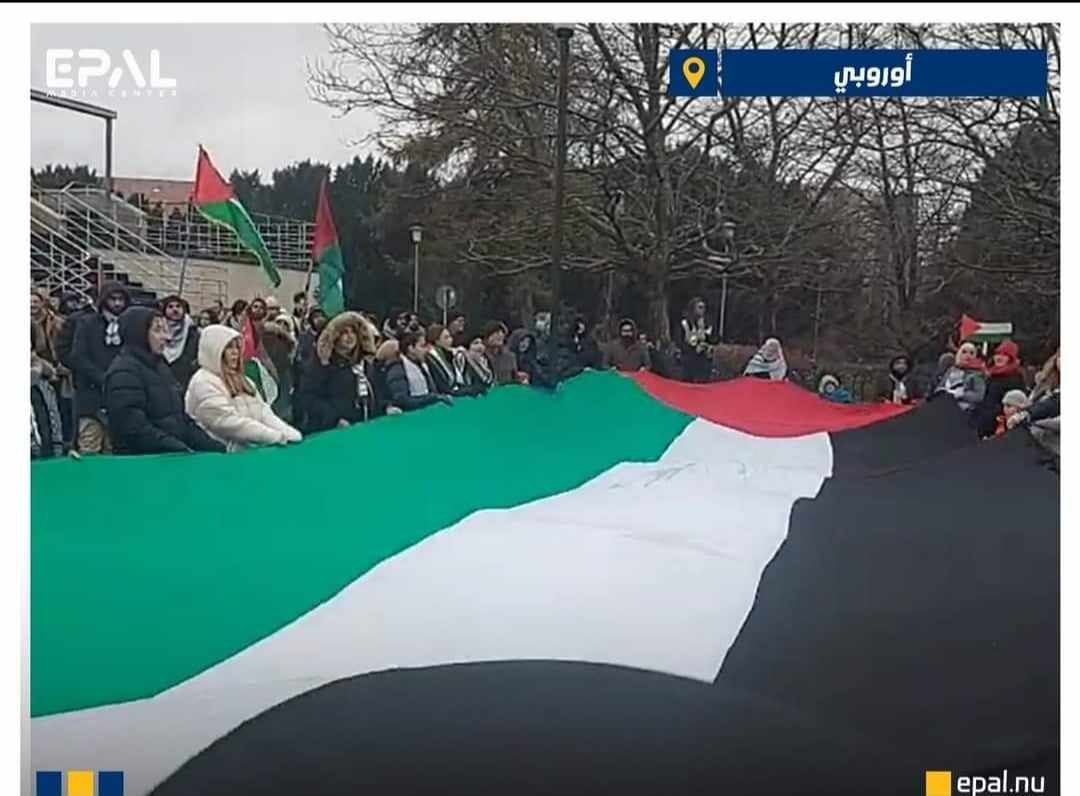 Una massiccia protesta a sostegno di Gaza nella città di Malmö, in Svezia. Crediti: Centro europeo dei media palestinesi.