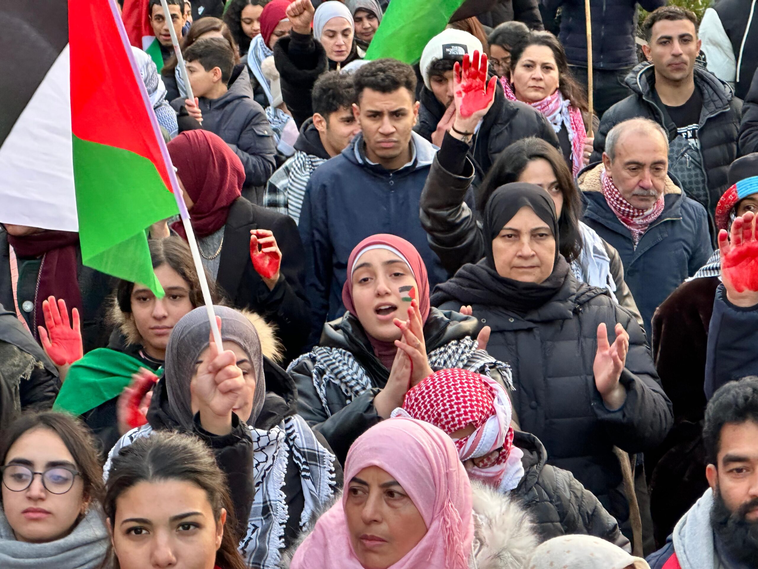 Una protesta di massa ad Aarhus, in Danimarca, in solidarietà con Gaza e la Palestina.