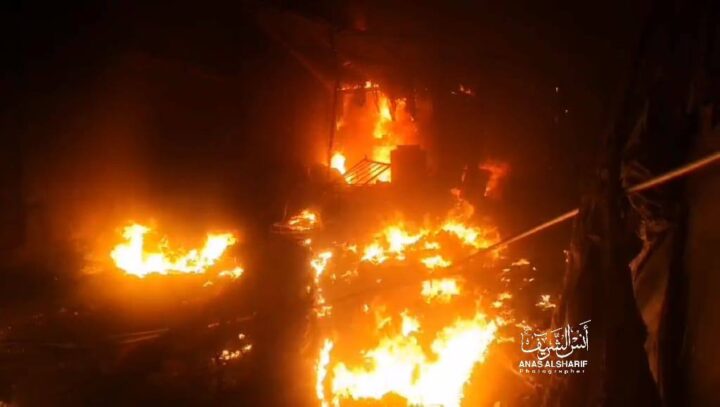 Diversi civili sono morti carbonizzati dopo che le forze israeliane hanno preso di mira le tende per sfollati all’interno della scuola di Yafa, a est della città di Gaza.