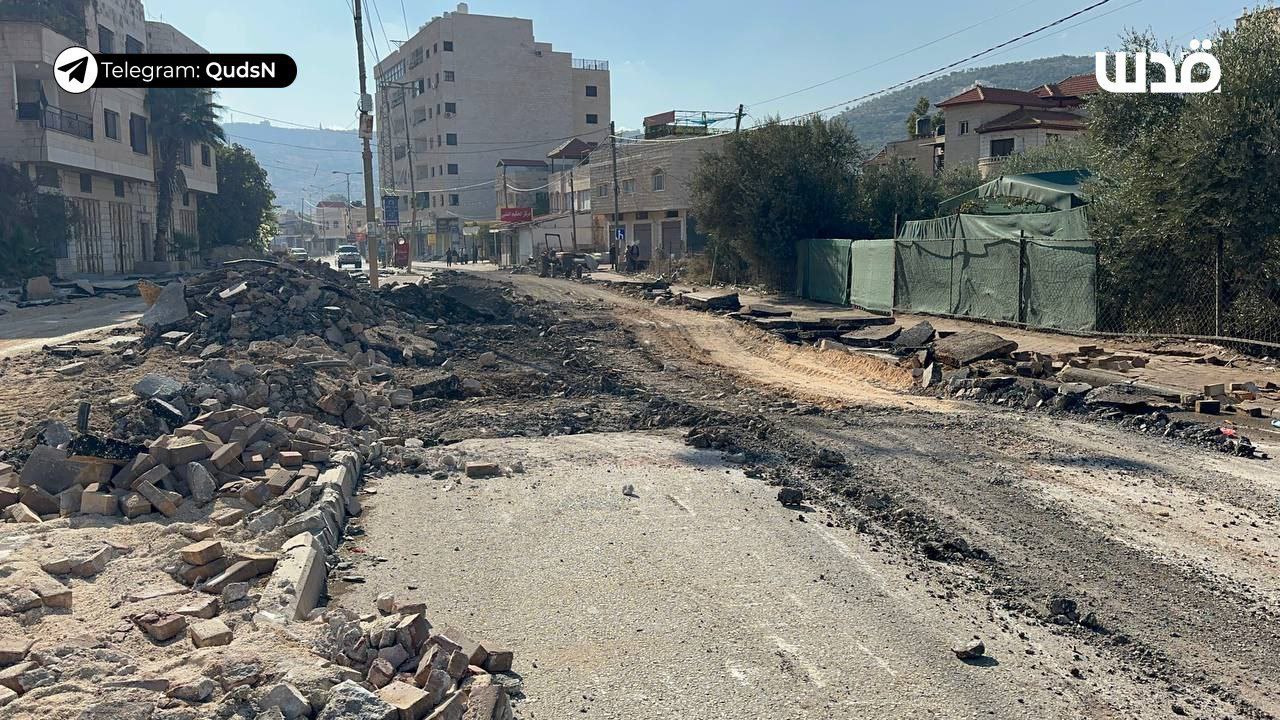 Le forze di occupazione israeliane hanno causato gravi danni alla strada principale della città di Qabatiya, a sud di Jenin.