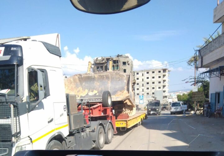 Le ruspe dell’esercito israeliano iniziano a distruggere le infrastrutture durante un attacco nella città di Tulkarem, posta sotto assedio.