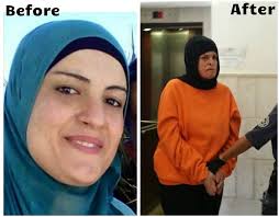 La “Giustizia” israeliana non le crede ed è condannata al carcere, con il suo bel volto e le mani distrutte dal fuoco.
