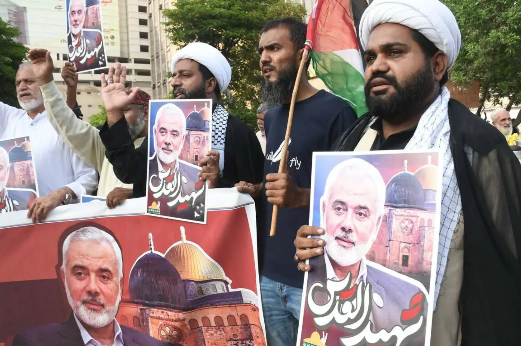 (Foto: sostenitori della Palestine Foundation, che portano bandiere e striscioni palestinesi, prendono parte a una manifestazione per condannare l’assassinio del capo politico di Hamas Ismail Haniyeh, a Karachi, in Pakistan, il 31 luglio 2024 [Sabir Mazhar – Anadolu Agency]).