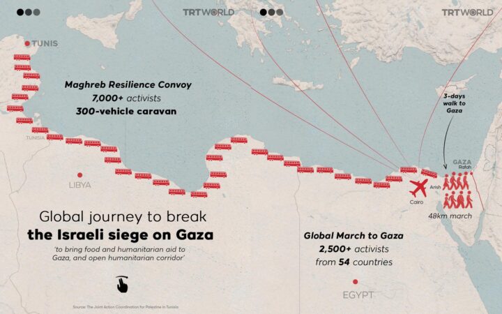 La March of the Free fa parte della più ampia Global March To Gaza, un movimento civile pacifico e senza affiliazione politica, e che chiede la fine dell’assedio e l’accesso umanitario illimitato a Gaza.