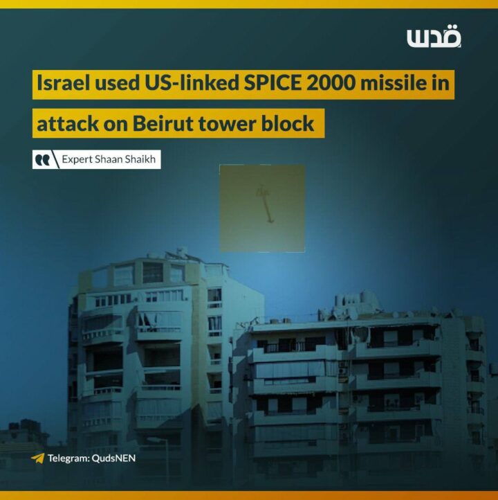 Shaan Shaikh, un esperto di missili presso il Center for Strategic and International Studies (CSIS), ha detto al notiziario libanese L’Orient Today che il missile era uno SPICE 2000.